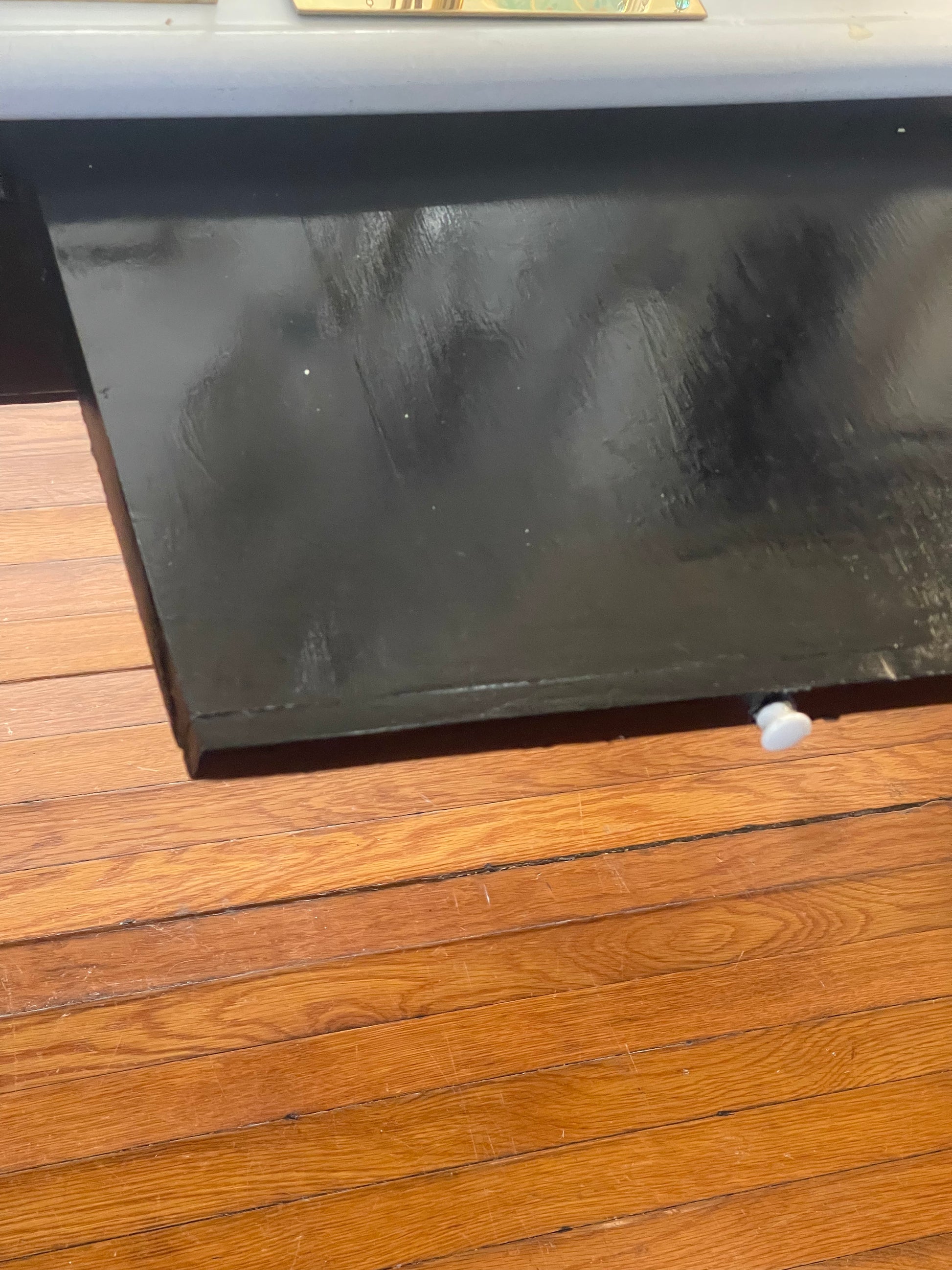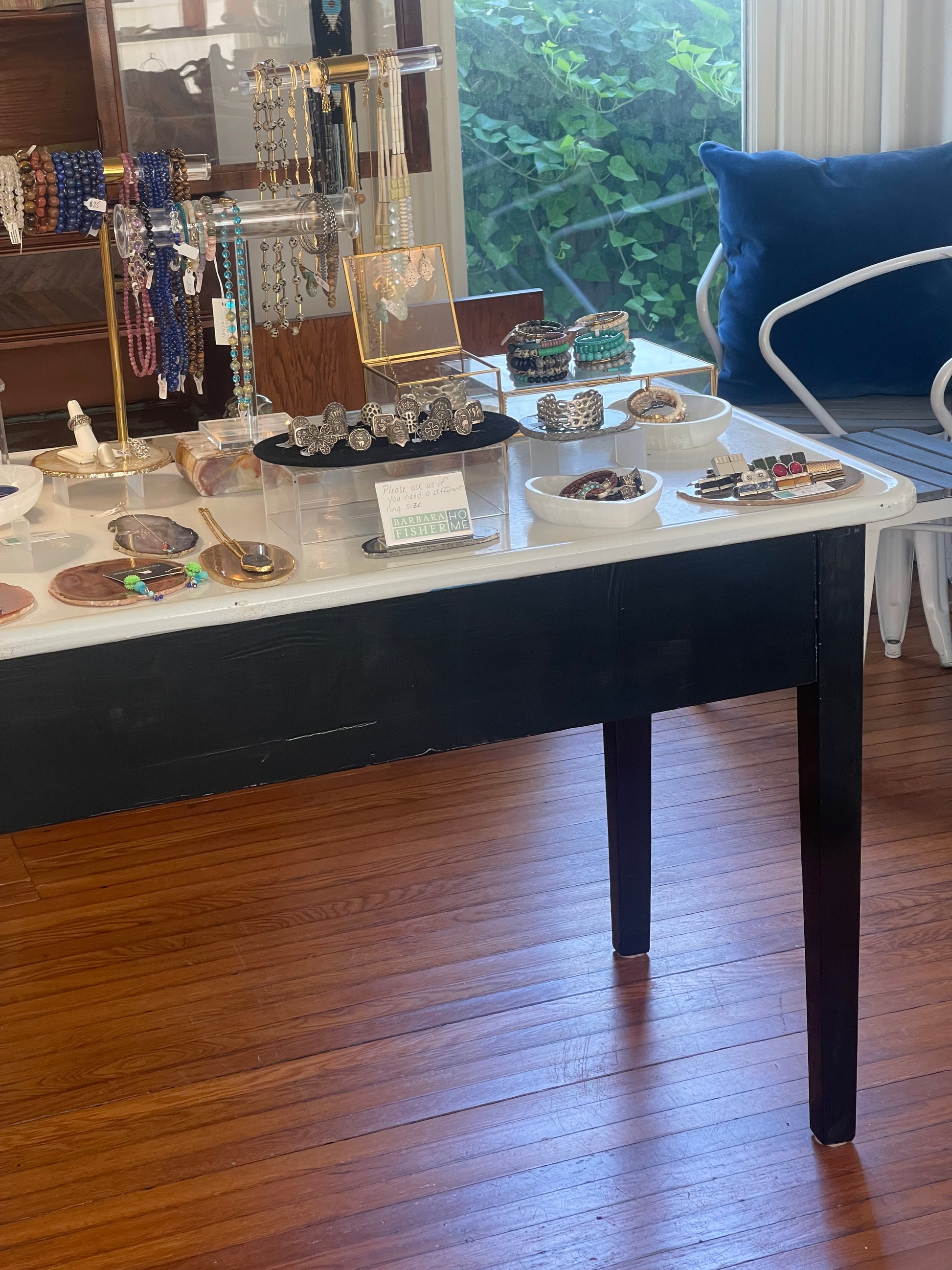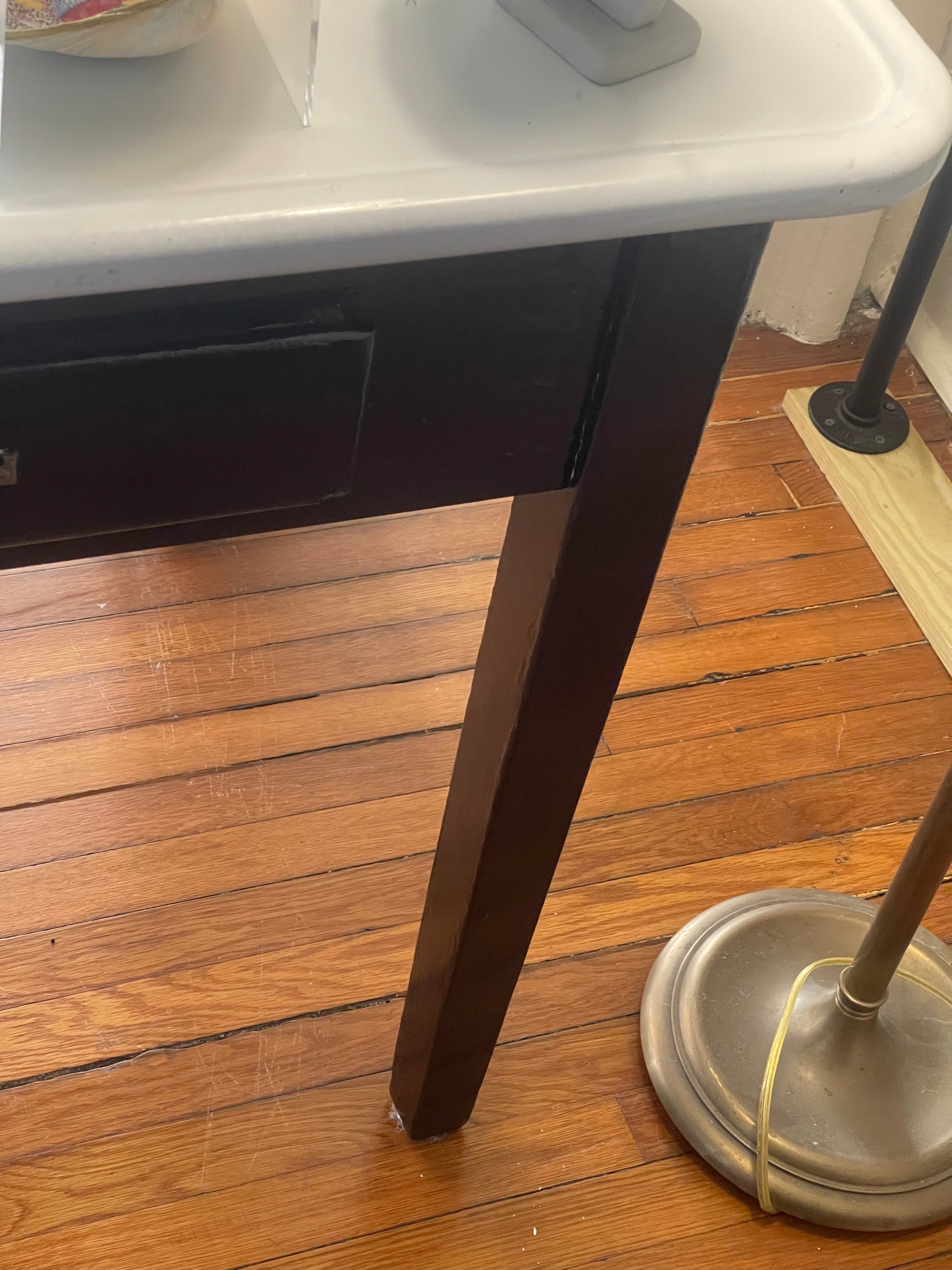 Black and White Metal Kitchen Table | Island. This beautiful piece has 2 pull-out drawers and a slide out wooden extension. The tabletop measures 27” x 48” and is 31” off the floor.