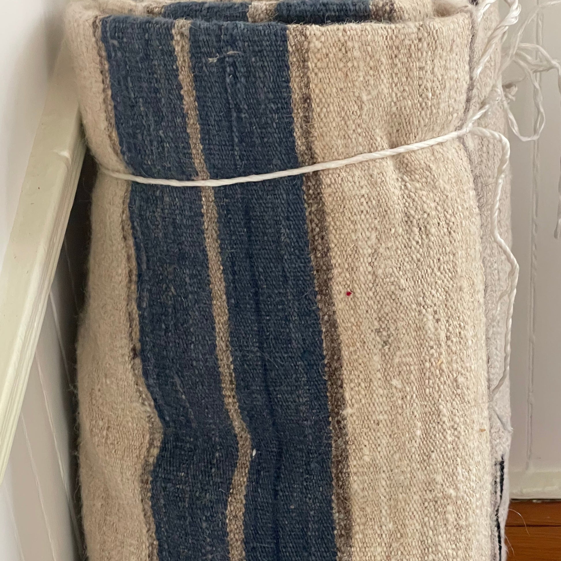 Custom Blue and Neutral Striped Wool Rug by Marc Phillips (Handwoven in Pakistan)