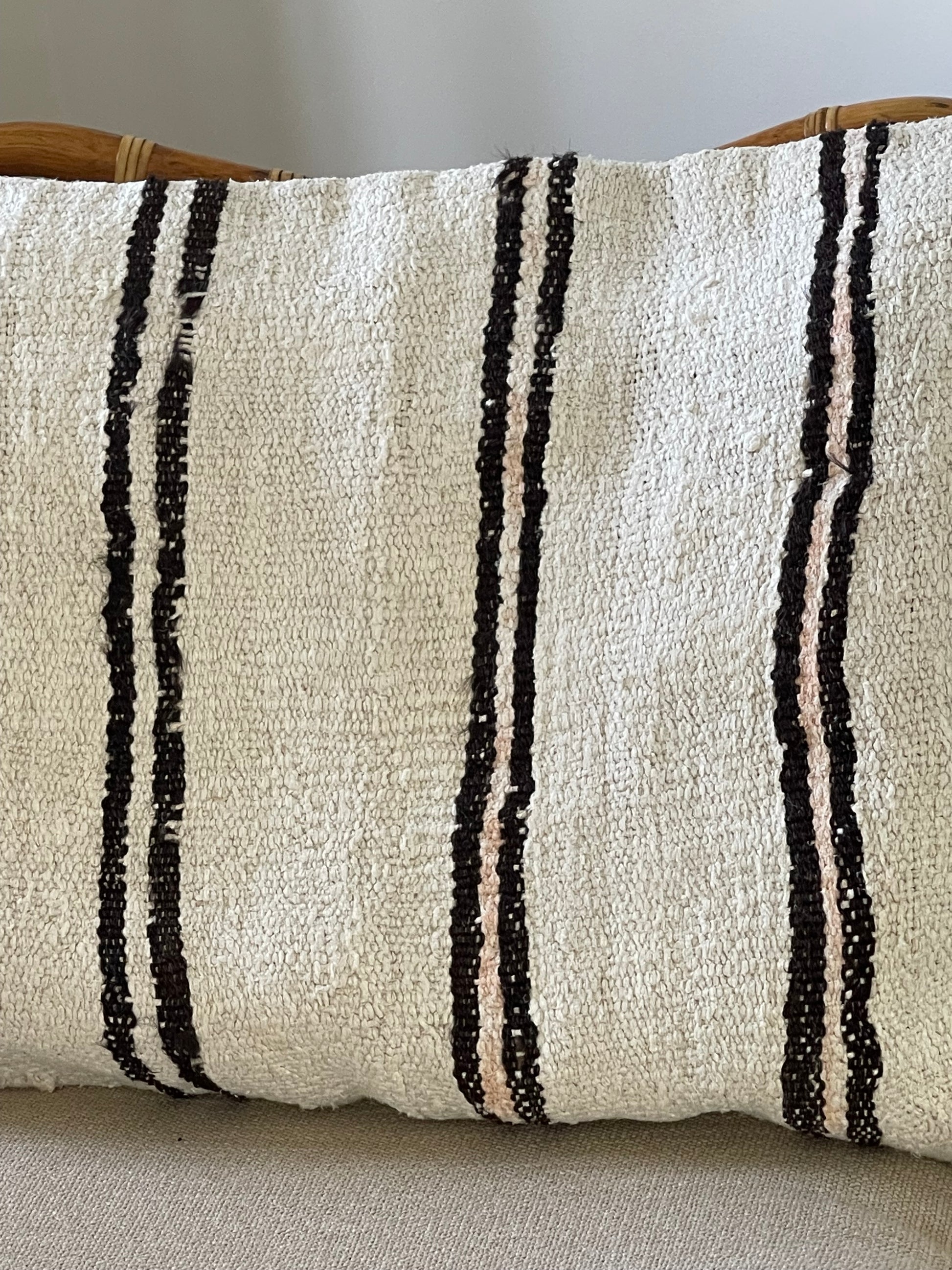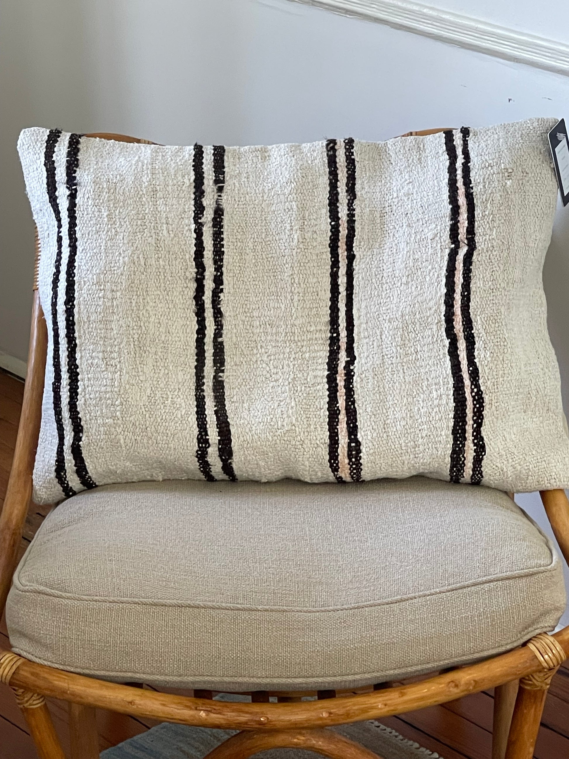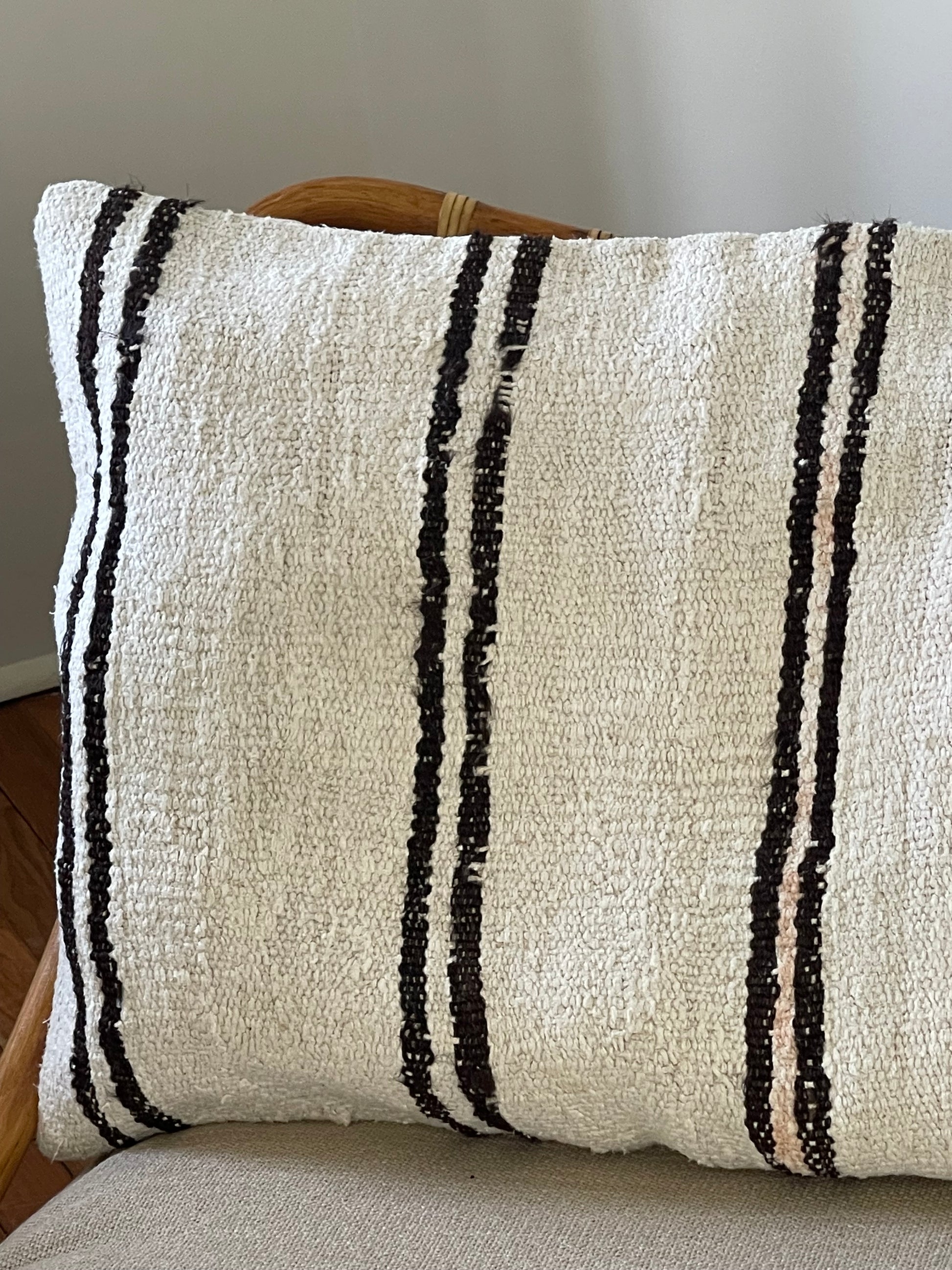 One-of-a-Kind Brown and White Striped Pillow Cover