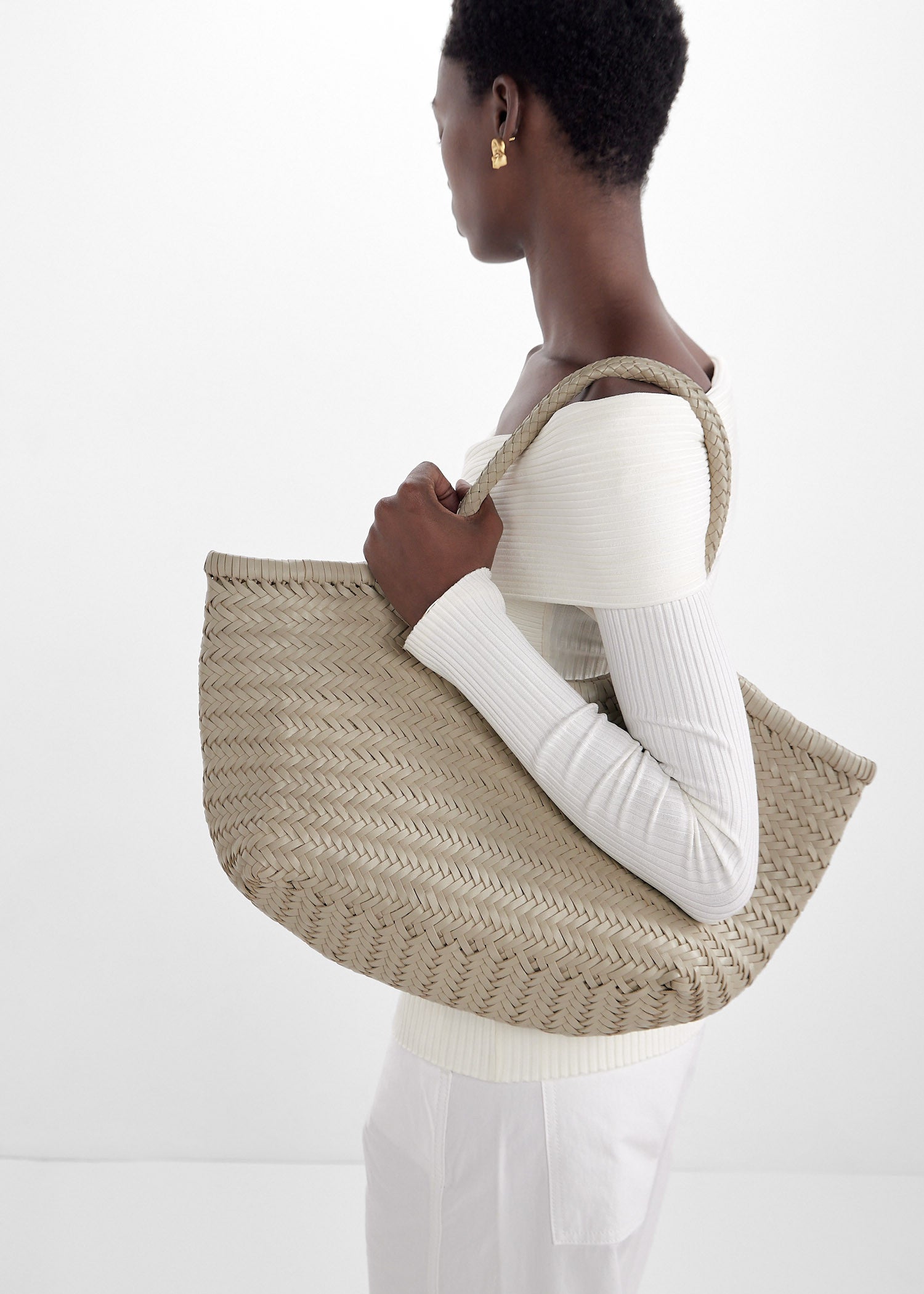 DRAGON NANTUCKET LARGE Handwoven Basket, Buffalo Calf Leather, No lining SIZE - Handle Drop: 23.5cm / 9.3in - Depth: 15cm / 5.9in - Height: 34cm / 13.4in - Width: 50cm / 19.7in