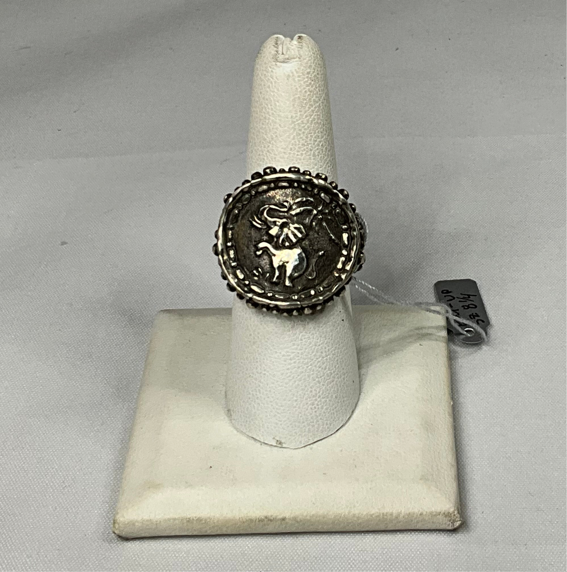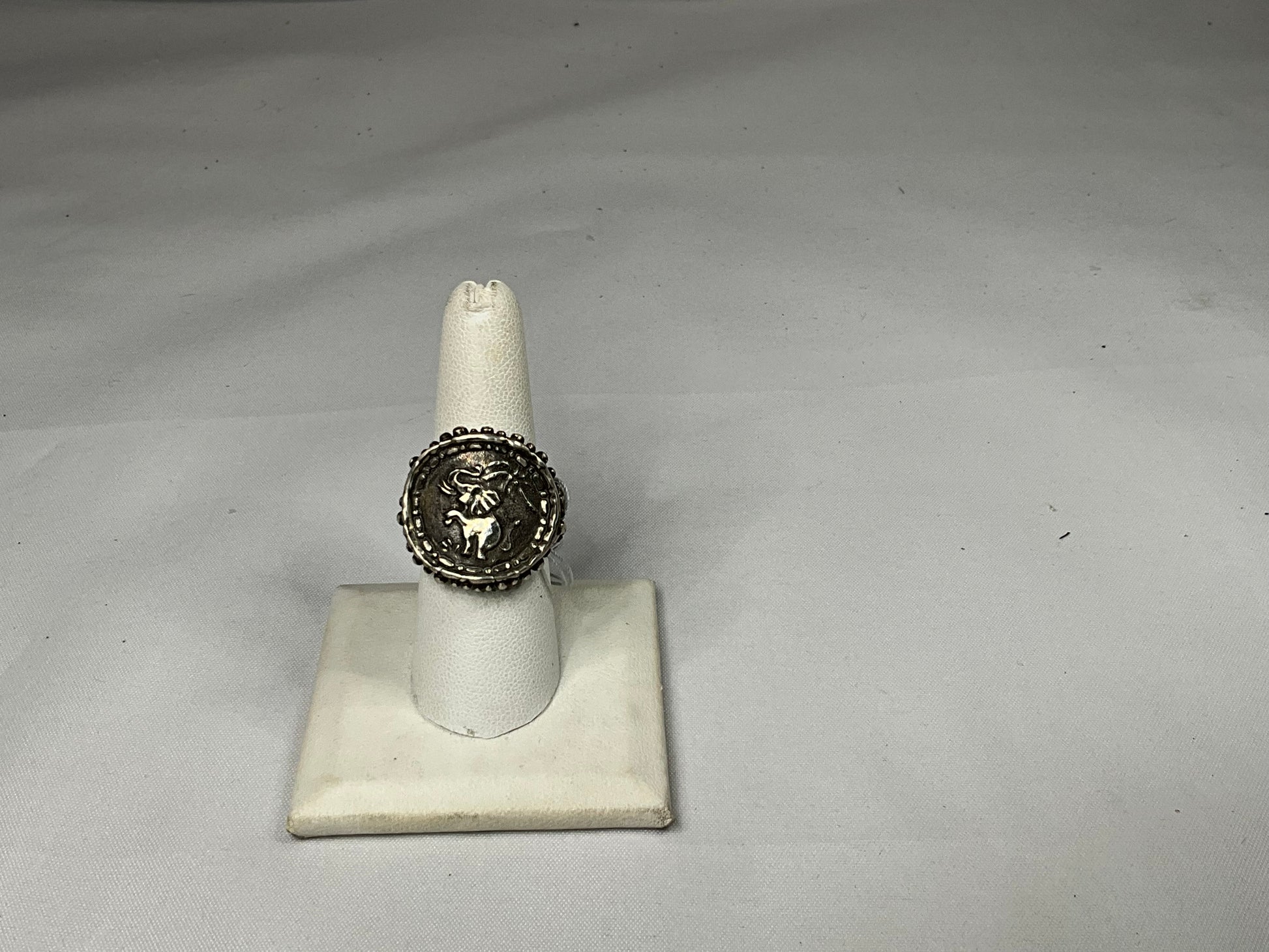 This handmade oval ring has a detailed Elephant shape engraved on the front.