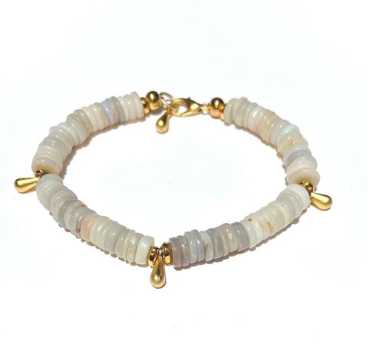Handmade using various stone heishi beads & 22K matte gold plated detail and closure. Beautiful stones that keep us dreaming of the sea.