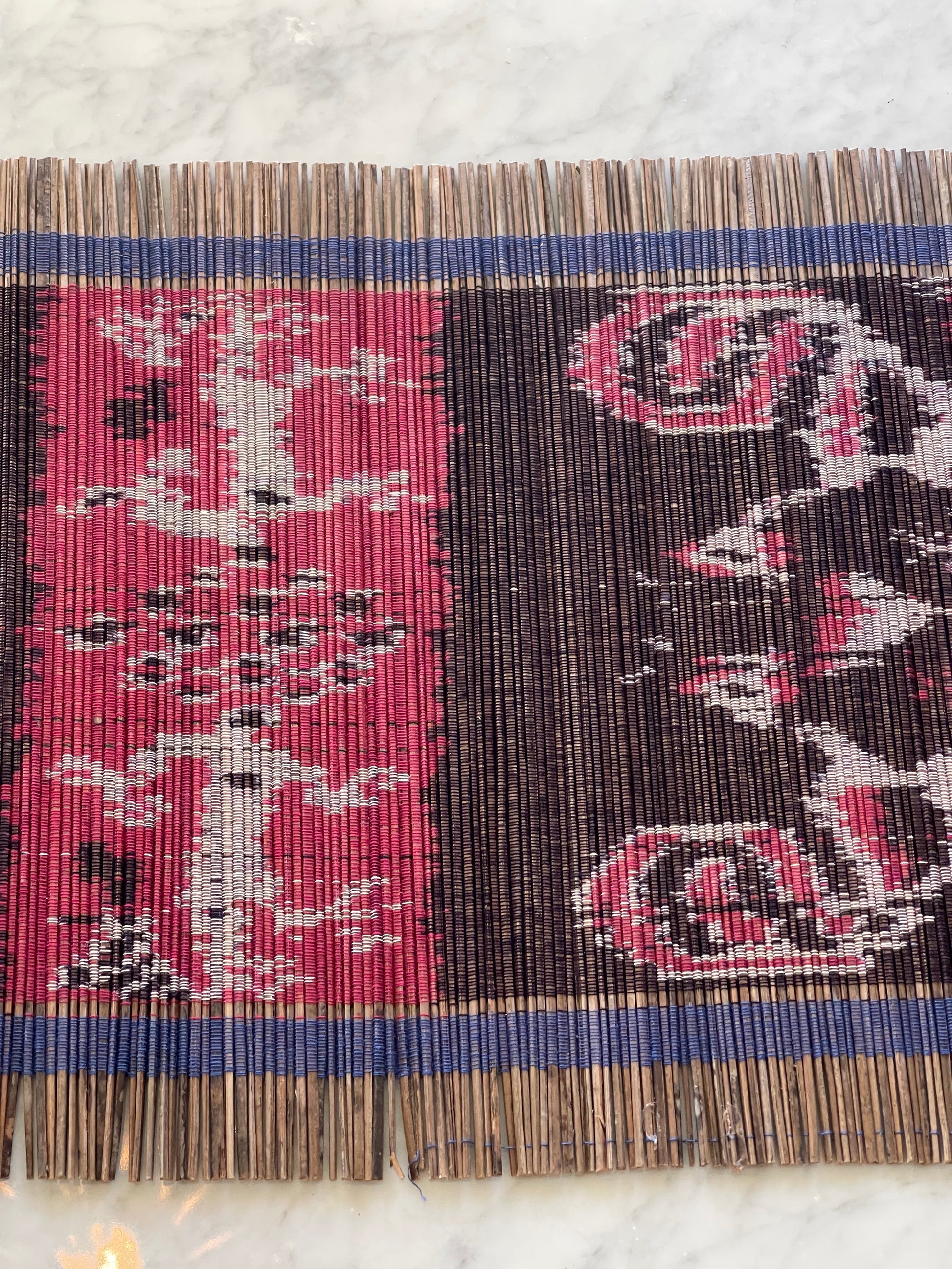 Handmade Thai Reed Table Runner (65" L x 13" W) - Red, Blue and White
