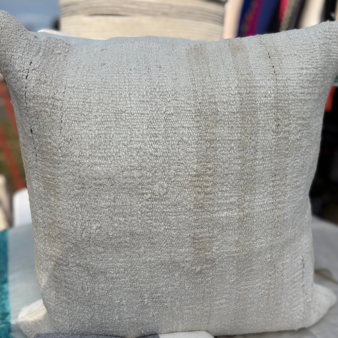 Handmade White with Beige Stripe Hemp Pillow from Türkiye