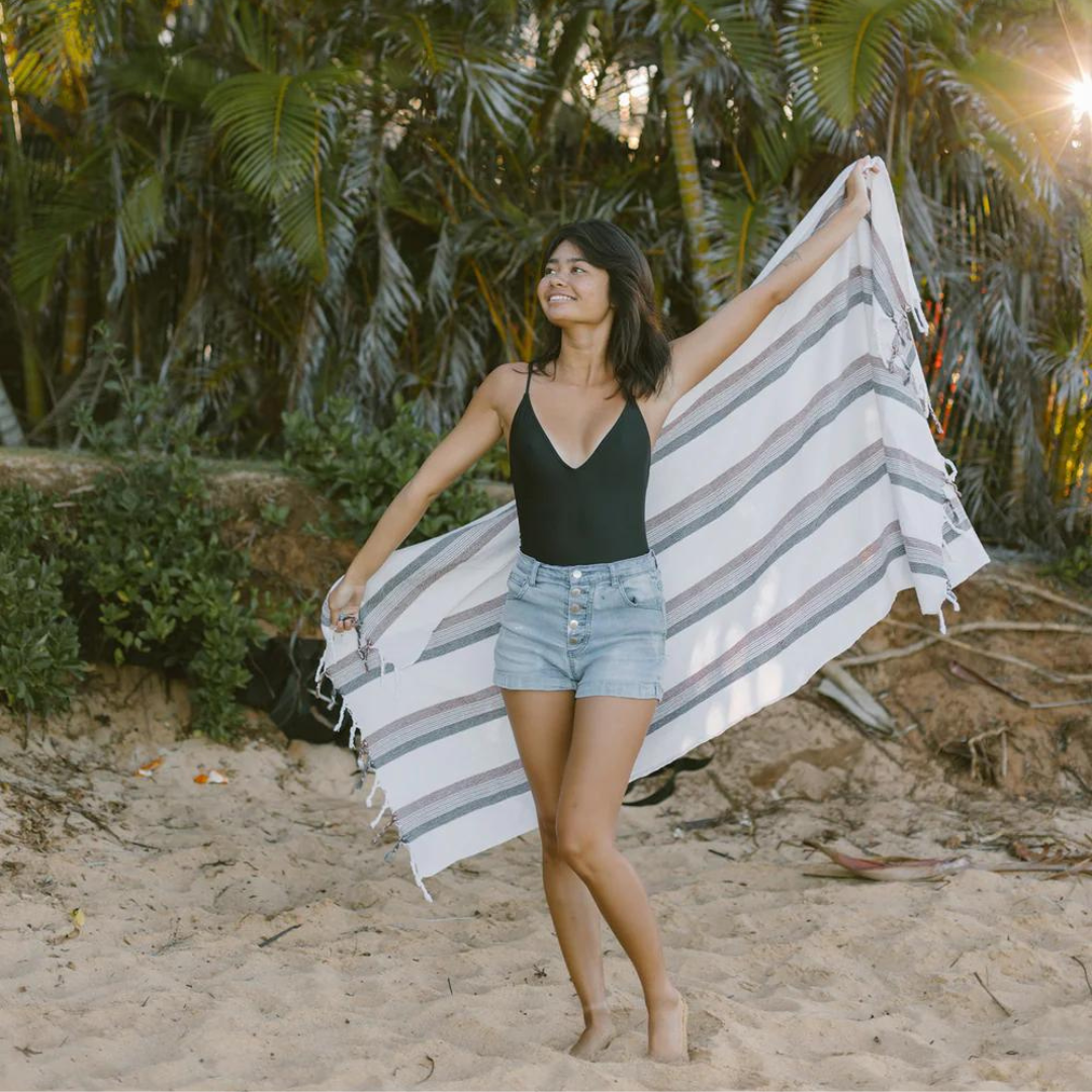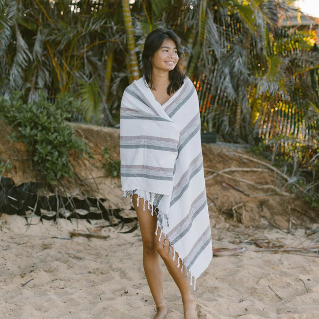 Our Brown Cream Nomad Turkish towel, also known as a pestemal, is handwoven by skilled artisans from premium quality ethically sourced cotton. Each piece is crafted using ancient weaving techniques that have been passed down for generations. Lightweight, beautifully soft, and highly absorbent, our towels are perfect for use after a shower, at the beach, as a sarong, and so much more.