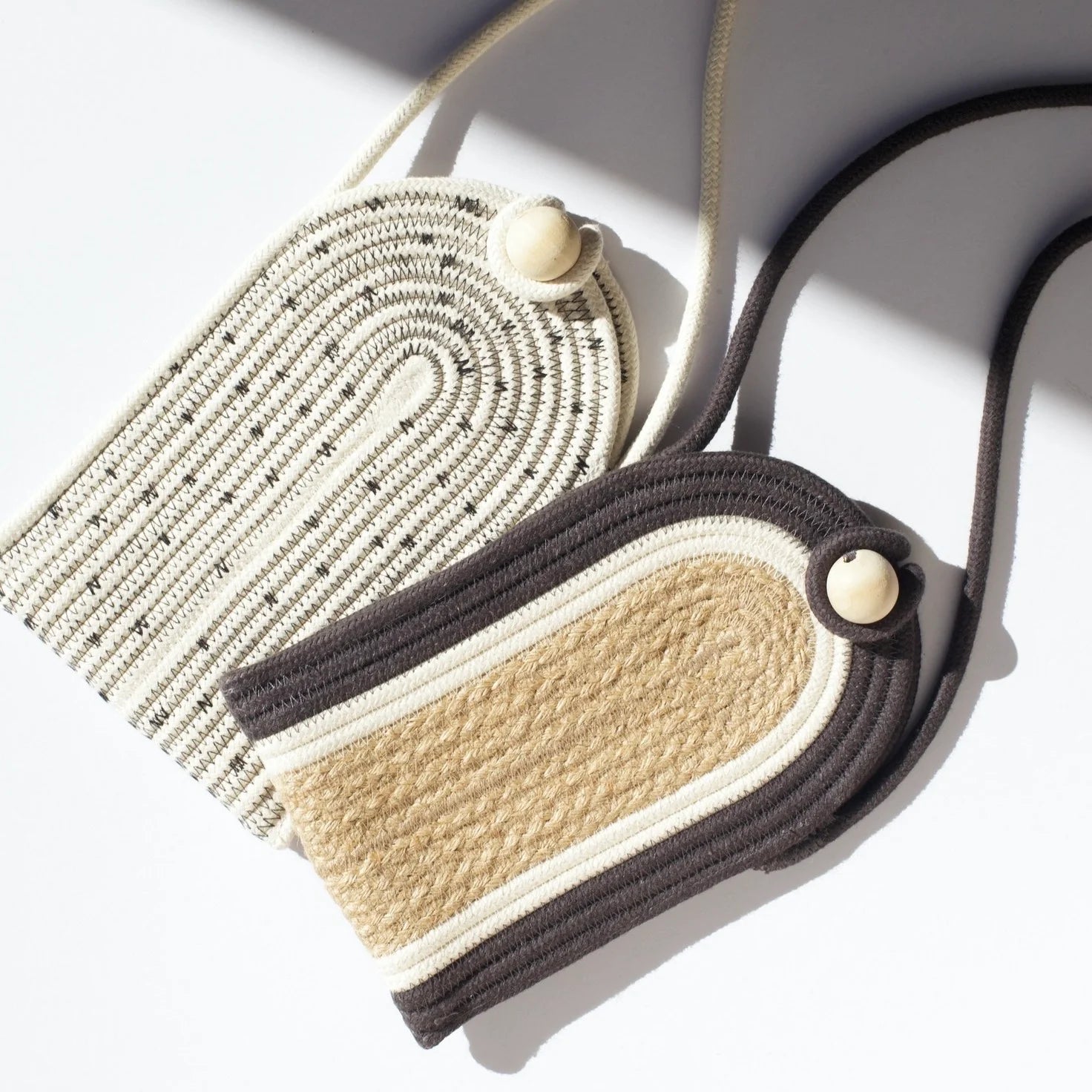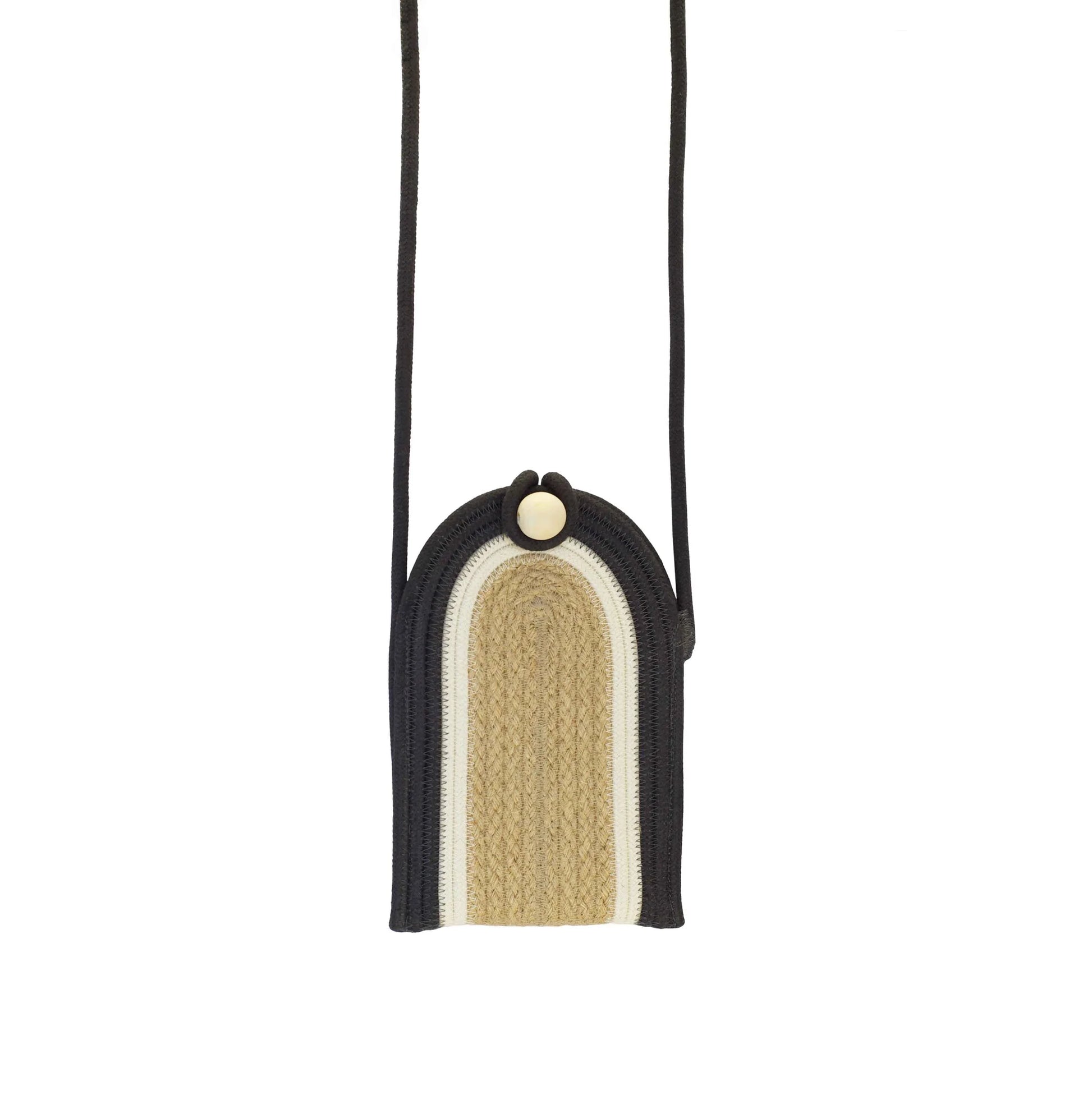 Say hello to a game changer for your on-the-go lifestyle. Our Charcoal Jute Jungle phone pouch is handcrafted using 100% cotton rope and natural fibres, perfectly blending style and functionality. These little travel companions are durable, keeping your phone protected, whilst still making a fashion statement. We have a range of colours and designs to choose from that can reflect your unique personal style. Whether it's for a gift or for yourself, these phone pouches are perfect to carry your phone on a walk, at the beach, at work or travelling.
